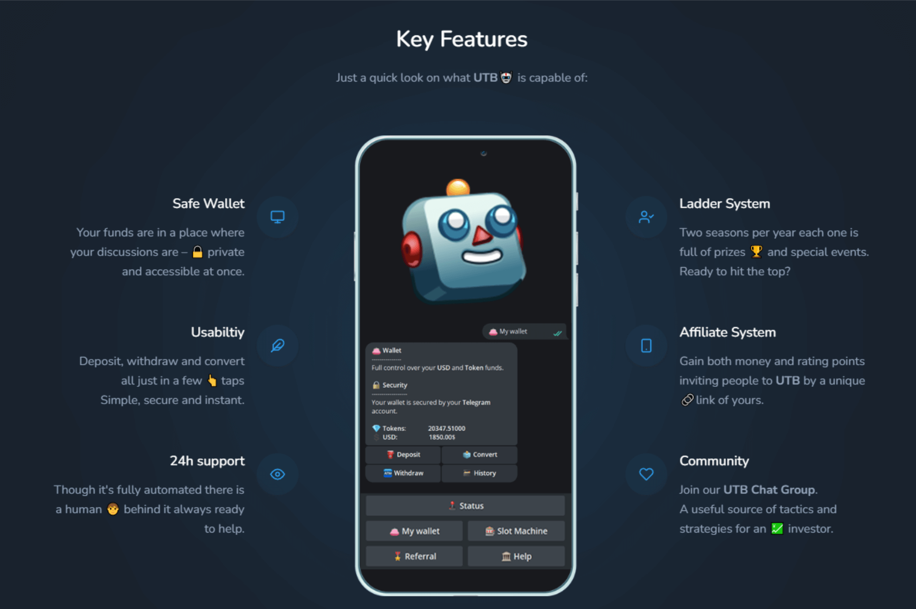 United TeleBot legt den Schwerpunkt auf Stabilität und betont das stetige Wachstum im Laufe der Zeit. Es verspricht den Nutzern sogar eine tägliche Wachstumsrate von 1% und behauptet, dass dieses Ziel durch die Nutzung des Telegram-Traffics erreicht werden kann, um die Monetarisierung und das Wachstum aufrechtzuerhalten.
