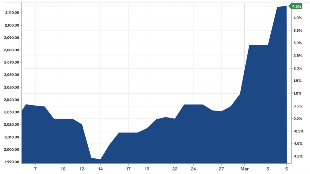Im Laufe des Jahres 2019 setzte ein Trendwandel ein, der einen erneuten Preisanstieg einleitete und sich bis 2020 erstreckte. Im August 2020 erreichte der Goldpreis seinen historischen Höchststand von über $ 2.000 pro Unze, den er 2023 wiederholen konnte. Zu Mitte Februar 2024 liegt der Goldpreis bei 2.025 USD pro Unze und steigt laut Gold Prognose wohl künftig weiter an.
